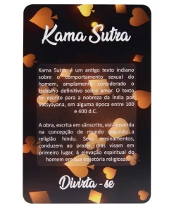Baralho Kama Sutra Erótico Soft 55 Cartas Copag é um baralho perfeito para te inspirar a testar novas possibilidades e ter uma noite inesquecível, possui 52 posições diferentes e foi feito com papel triplex 300g e plastificação brilho.