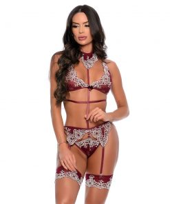 Além de ser extremamente sexy e ser fabricado em renda floral incrivelmente linda, o conjunto traz muita elegância e sofisticação. Pode ser usado em um quarto trabalhado à luz de velas para surpreender quem você ama e proporcionar um momento ainda melhor para o casal.