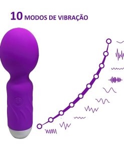 Mini Varinha Mágica com 10 modos de vibração, o produto é macio ao toque ergonômico,